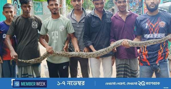 ওয়াইল্ড লাইফ অ্যান্ড স্নেক রেসকিউ টিমের সদস্য আমির হোসাইন শাওন জানান, বার্মিজ প্রজাতির অজগরটি জমিতে বসানো ভাসা জালে আটকে পড়েছিলো। প্রায় ৮ ফুট লম্বা অজগরটি ওজন ৯ কেজির মতো হবে। বন বিভাগের সাথে কথা বলে অজগরটি শীঘ্রই অবমুক্ত করা হবে।