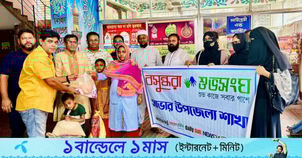 ‘মানুষ মানুষের জন্য’ এই মানবিক মূল্যবোধকে ধারণ করে, বসুন্ধরা শুভসংঘ সমাজের অসহায় ও দুঃস্থ মানুষের পাশে দাঁড়াতে নিয়মিত কাজ করে যাচ্ছে। এরই ধারাবাহিকতায় সাভার উপজেলা শাখার উদ্যোগে এক অসহায় পরিবারের মাঝে এক মাসের খাদ্যসামগ্রী বিতরণ করা হয়েছে।