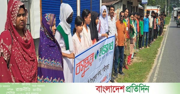 পলাশবাড়িতে বাল্যবিবাহ ও মাদকবিরোধী মানববন্ধনে বসুন্ধরা শুভসংঘ
