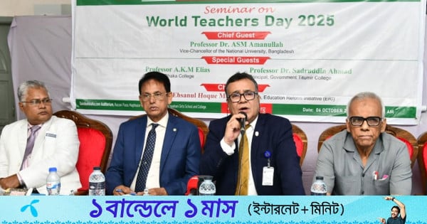 সোমবার রাজধানীর মগবাজারে ‘বিশ্ব শিক্ষক দিবস ২০২৫’ উপলক্ষে এডুকেশন রিফরম ইনিশিয়েটিভ (ইআরআই) আয়োজিত সেমিনারে প্রধান অতিথির বক্তব্যে তিনি বলেন, বর্তমানে দেশের শিক্ষাখাতে বরাদ্দ মাত্র জিডিপির ১.৭১ শতাংশ, যা যথেষ্ট নয়। অন্য স্বাধীনতা অর্জনকারী দেশগুলো শিক্ষাখাতে ব্যাপক বিনিয়োগ করে অনেক এগিয়ে গেছে।