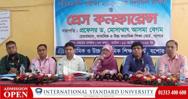 বৃহস্পতিবার সকালে যশোর মাধ্যমিক ও উচ্চ মাধ্যমিক শিক্ষা বোর্ডের সভাকক্ষে ফলাফল ঘোষণা করেন বোর্ডের চেয়ারম্যান অধ্যাপক ড. আসমা বেগম।