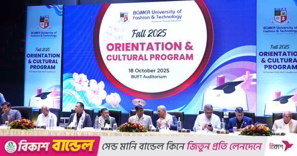বিজিএমইএ ইউনিভার্সিটি অব ফ্যাশন অ্যান্ড টেকনোলজিতে (বিইউএফটি) ফল সেমিস্টার-২০২৫ এ ভর্তি হওয়া নবাগত শিক্ষার্থীদের নবীনবরণ অনুষ্ঠিত হয়েছে। শনিবার (১৮ অক্টোবর) বিশ্ববিদ্যালয়ের অডিটরিয়ামে আয়োজিত এ অনুষ্ঠানে নবীন শিক্ষার্থীদের বরণ করে নেন শিক্ষক, কর্মকর্তা ও প্রাক্তন শিক্ষার্থীরা।