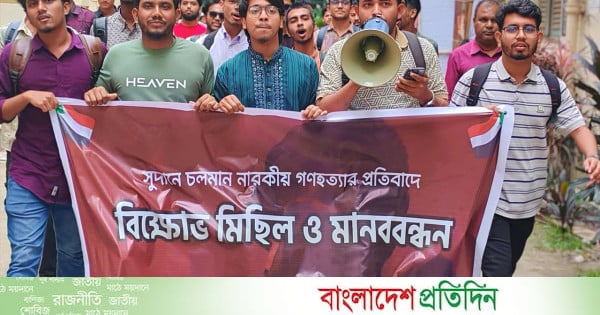 সুদানে চলমান গণহত্যার প্রতিবাদে জগন্নাথ বিশ্ববিদ্যালয়ের সাধারণ শিক্ষার্থীরা রবিবার বিকেলে বিক্ষোভ মিছিল ও মানববন্ধন পালন করেছেন।