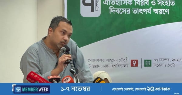 শুক্রবার ঢাকা বিশ্ববিদ্যালয়ের মোজাফফর আহমেদ চৌধুরী অডিটোরিয়ামে ‘৭ নভেম্বর ঐতিহাসিক বিপ্লব ও সংহতি দিবসের তাৎপর্য স্মরণে জনতার নয়া রাজনীতির আকাঙ্ক্ষা: বিপ্লব ও সংহতি দিবস’ শীর্ষক আলোচনা সভায় তিনি এসব বলেন।