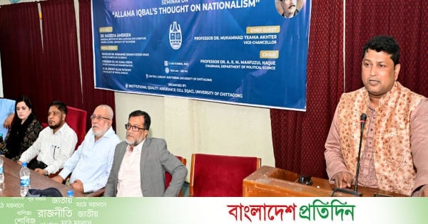 বুধবার (১২ নভেম্বর) চট্টগ্রাম বিশ্ববিদ্যালয়ের (চবি) কেন্দ্রীয় গ্রন্থাগার মিলনায়তনে ইনস্টিটিউশনাল কোয়ালিটি অ্যাস্যুরেন্স সেলের (আইকিউএসি) আয়োজিত ‘Allama Iqbal’s Thought on Nationalism’ শীর্ষক সেমিনারে এসব কথা বলেন পাকিস্তানের ইউনিভার্সিটি অব দ্য পাঞ্জাবের ওরিয়েন্টাল কলেজের ইনস্টিটিউট অব উর্দু ল্যাঙ্গুয়েজ অ্যান্ড লিটারেচারের প্রফেসর ড. বশিরা আমব্রিন। সেমিনারে সভাপতিত্ব করেন চবি রাষ্ট্রবিজ্ঞান বিভাগের সভাপতি প্রফেসর ড. এ. কে. এম. মাহফুজুল হক (মাহফুজ পারভেজ)।