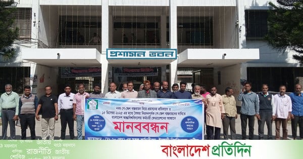 বুধবার বেলা সাড়ে ১১টায় প্রশাসন ভবন চত্বরে বাংলাদেশ আন্তঃবিশ্ববিদ্যালয় কর্মচারী ফেডারেশনের আহ্বানে এই কর্মসূচি অনুষ্ঠিত হয়। বিশ্ববিদ্যালয়ের বিভিন্ন বিভাগ ও দপ্তরের অর্ধশতাধিক কর্মচারী মানববন্ধনে অংশ নেন।