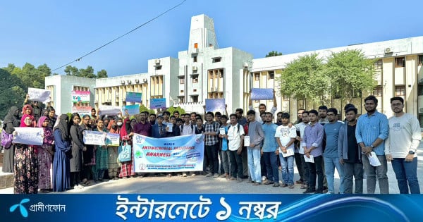 অ্যান্টিমাইক্রোবিয়াল রেজিস্ট্যান্সের ঝুঁকিসহ অ্যান্টিবায়োটিকের অপব্যবহার সম্পর্কে সচেতনতা বৃদ্ধিতে লিফলেট বিতরণ করা হয়। সপ্তাহব্যাপী এ কর্মসূচি চলবে। বুধবার আমেরিকান সোসাইটি ফর মাইক্রোবাইলোজি স্টুডেন্ট বিশ্ববিদ্যালয়ের চ্যাপ্টারের আয়োজনে এ কর্মসূচি শুরু হয়।