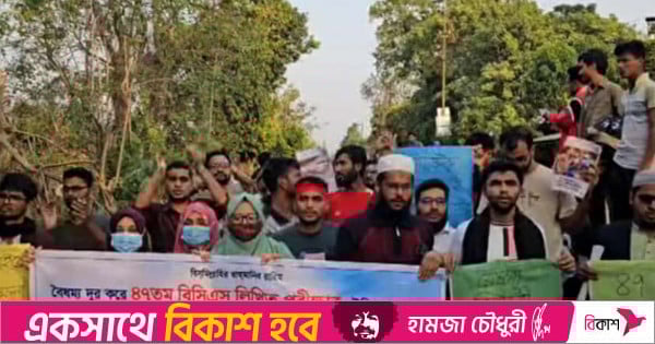 ৪৭তম বিসিএস লিখিত পরীক্ষার সময় বৃদ্ধি ও শিক্ষার্থীদের উপর পুলিশের হামলার প্রতিবাদে রেললাইন অবরোধ করেছেন রাজশাহী বিশ্ববিদ্যালয়ের (রাবি) শিক্ষার্থীরা। অবিলম্বে দাবি আদায়ে শনিবার বিকেলে বিশ্ববিদ্যালয়ের স্টেশন বাজারে রেললাইন অবরোধ করেন তারা।
