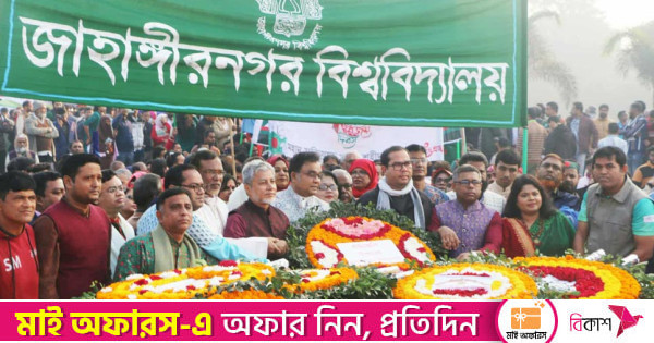 যথাযোগ্য মর্যাদা ও উৎসবমুখর পরিবেশে জাহাঙ্গীরনগর বিশ্ববিদ্যালয়ে (জাবি) মহান বিজয় দিবস উদযাপিত হয়েছে।