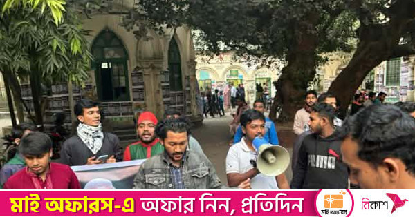 এসময় শিক্ষার্থীরা ‘দিল্লি না, ঢাকা, ঢাকা-ঢাকা’, ‘ভারতীয় আগ্রাসন, রুখে দেবে জনগণ’, ‘আজকের এইদিনে, আবরারকে মনে পড়ে’ ইত্যাদি স্লোগান দেন।