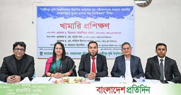 গাজীপুর কৃষি বিশ্ববিদ্যালয় (গাকৃবি) কর্তৃক “উদ্ভাবিত ভ্রাম্যমাণ দুধ পরীক্ষাগারের মাধ্যমে খামারির দোরগোড়ায় দুধের গুণগত মান যাচাইকরণ” শীর্ষক এক খামারি প্রশিক্ষণ অনুষ্ঠিত হয়েছে। খামারির পরিশ্রমের ন্যায্য মূল্য নিশ্চিত করা এবং ভোক্তার জন্য নিরাপদ দুধ সরবরাহে ভ্রাম্যমাণ দুধ পরীক্ষাগারের ব্যবহার ও হাতে-কলমে প্রয়োগ শেখানোই ছিল এ প্রশিক্ষণের মূল উদ্দেশ্য।