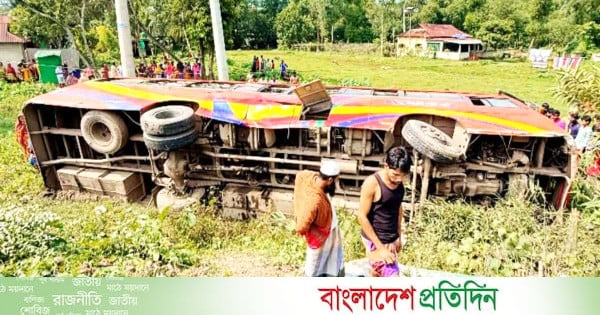 হবিগঞ্জে মহাসড়কে বাস উল্টে ৩০ যাত্রী আহত