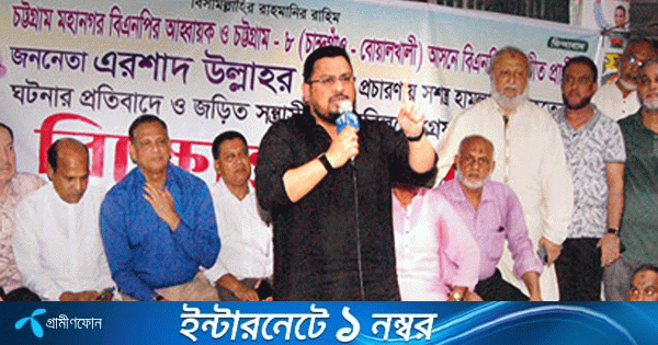 চট্টগ্রাম মহানগর বিএনপির আহ্বায়ক ও চট্টগ্রাম-৮ আসনে ধানের শীষের প্রার্থী এরশাদ উল্লাহর ওপর সন্ত্রাসী হামলার প্রতিবাদে সমাবেশ করেছে বিএনপি।