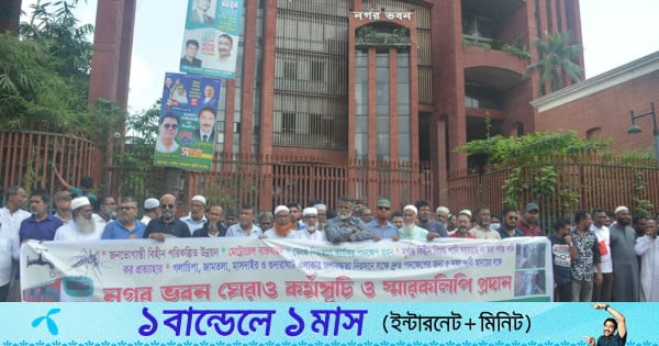 মানববন্ধনে জনভোগান্তি বিহীন পরিকল্পিত উন্নয়ন, মেট্রোরেল বাস্তবায়ন, ডেঙ্গু নিয়ন্ত্রণে কার্যকর পদক্ষেপ গ্রহণ, দুর্গন্ধবিহীন বিশুদ্ধ পানি সরবরাহ না করা পর্যন্ত পানি কর প্রত্যাহার, গলাচিপা জামতলা মাসদাইর ও গুদারাঘাট এলাকার জলাবদ্ধতা নিরসনের দাবি জানানো হয়।