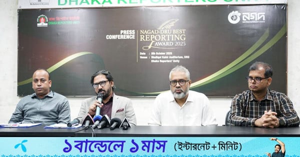 ঢাকা রিপোর্টার্স ইউনিটির (ডিআরইউ) বেস্ট রিপোর্টিং অ্যাওয়ার্ড-২০২৫ দেবে মোবাইল ফাইন্যান্সিয়াল সার্ভিস ‘নগদ’। আজ বুধবার ডিআরইউ'র শফিকুল কবীর মিলনায়তনে এক সংবাদ সম্মেলনে যৌথভাবে এ ঘোষণা দিয়েছে নগদ ও ঢাকা রিপোর্টার্স ইউনিটি। এ বছর এই পুরস্কারের নাম দেওয়া হয়েছে নগদ-ডিআরইউ বেস্ট রিপোর্টিং অ্যাওয়ার্ড-২০২৫।