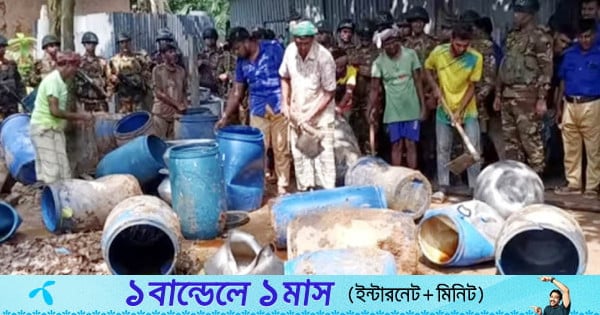জানা যায়, ঠাকুরপাড়া এলাকায় দীর্ঘদিন ধরেই চোলাই মদ বানায় এলাকার বেশ কয়েকটি পরিবার। তারা এসকল চোলাই মদ ড্রাম ও পাতিলের মধ্যে রেখে মাটির নিচে দীর্ঘদিন রেখে দেয়। সেগুলো পরে তুলে বিভিন্ন এলাকায় বিক্রি করেন। এসব তথ্যের ভিত্তিতে বুধবার যৌথবাহিনী একটি বিশেষ অভিযান চালায়।