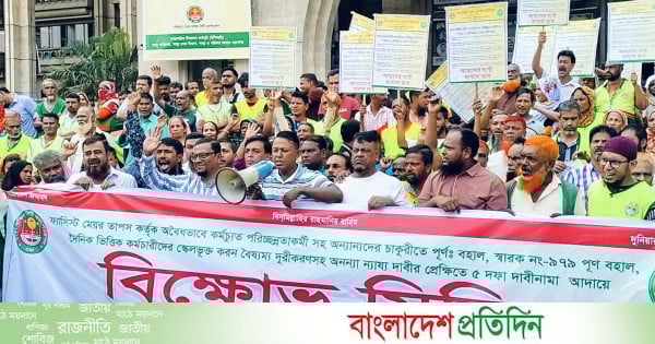 ৫ দফা দাবিতে ডিএসসিসির পরিচ্ছন্নকর্মীদের বিক্ষোভ