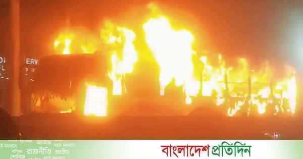 বুধবার সন্ধ্যা সাড়ে ৬টার দিকে আগুন দেওয়ার খবর পায় ফায়ার সার্ভিস। তাৎক্ষণিকভাবে বাসটির নাম জানা যায়নি।