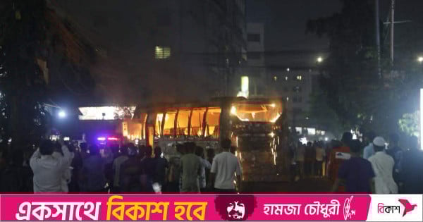 ডিউটি অফিসার মো. শাহজাহান বলেন, মহাখালী দুর্যোগ ব্যবস্থাপনা অধিদপ্তরের সামনে বৈশাখী পরিবহনের একটি বাসে আগুন লেগেছে। আগুনের খবর পেয়ে ফায়ার সার্ভিসের দুটি ইউনিট কাজ করছে।