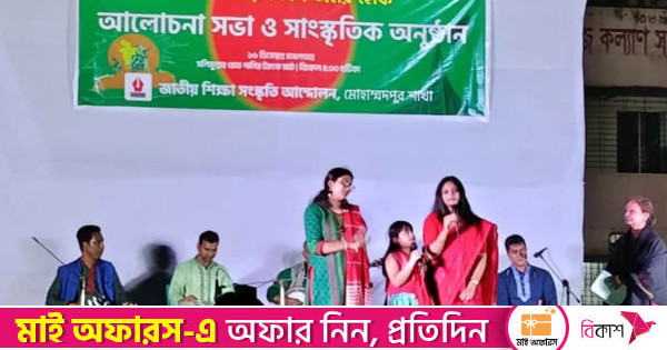মহান বিজয় দিবস উপলক্ষে জাতীয় শিক্ষা সংস্কৃতি আন্দোলনের উদ্যোগে মোহাম্মদপুরের সলিমুল্লাহ রোড পানির ট্যাংকি মাঠে আলোচনা সভা ও সাংস্কৃতিক অনুষ্ঠান অনুষ্ঠিত হয়েছে। অনুষ্ঠানে বক্তারা দলমত নির্বিশেষে মুক্তিযুদ্ধের মূল্যবোধ সমুন্নত রেখে ঐক্যবদ্ধ হয়ে জাতি গঠনে কাজ করার আহ্বান জানান।