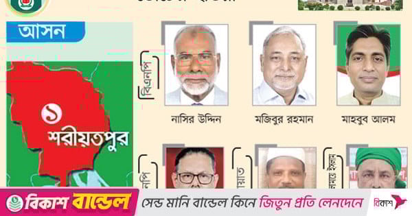সদর উপজেলার ১১ ইউনিয়ন, ১ পৌরসভা এবং জাজিরা উপজেলার ১২ ইউনিয়ন ও ১ পৌরসভা নিয়ে গঠিত শরীয়তপুর-১ সংসদীয় আসন। এ আসনে বিএনপি থেকে মনোনয়ন পেতে তৎপরতা চালাচ্ছেন সাবেক সংসদ সদস্য সরদার এ কে এম নাসির উদ্দিন, জেলা বিএনপির সাবেক অর্থ সম্পাদক মজিবুর রহমান, জেলা সাংগঠনিক সম্পাদক মাহবুব আলম তালুকদার ও কৃষক দলের কেন্দ্রীয় যুগ্ম সাধারণ সম্পাদক মিন্টু সওদাগর। জামায়াতে ইসলামী এ আসনে ড. মোশাররফ হোসেন মাসুদকে দলীয় প্রার্থী ঘোষণা করেছে। তিনি ইসলামী ছাত্রশিবিরের ঢাকা বিশ^বিদ্যালয়ের সাবেক সভাপতি। এ ছাড়া বাংলাদেশ খেলাফত মজলিসের মহাসচিব মাওলানা জালালুদ্দীন আহমদ, গণঅধিকার পরিষদের কেন্দ্রীয় সাংগঠনিক সম্পাদক অ্যাডভোকেট ফিরোজ আহমেদ মুন্সী, এনসিপির ফরিদপুর অঞ্চলের টিমপ্রধান আবদুর রহমান ও অ্যাডভোকেট রুহুল আমীন, জমিয়তে উলামায়ে ইসলাম বাংলাদেশের সহকারী মহাসচিব মাওলানা জিয়াউল হক কাসেমীসহ অন্য আরও কিছু নেতা ব্যানার-ফেস্টুন সাঁটিয়ে নির্বাচনে প্রার্থী হওয়ার জন্য নিজেকে জানান দিচ্ছেন। শরীয়তপুরে সংসদীয় আসন তিনটি। সরদার এ কে এম নাসির উদ্দিন বলেন, ‘শরীয়তপুরে সব সময়ই বিএনপির অবস্থা ভালো ছিল। এখনো আছে। তিনটি আসনেই বিএনপির প্রার্থীরা জয়লাভ করবেন। দলীয় মনোনয়ন পেলে আমি নির্বাচন করব।’ মাহবুব আলম তালুকদার বলেন, ‘ছোটকাল থেকেই বিএনপির রাজনীতির সঙ্গে জড়িত। দল মনোনয়ন দিলে নির্বাচন করার জন্য প্রস্তুত আছি।’