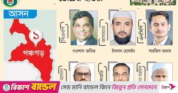 সদর, তেঁতুলিয়া ও আটোয়ারী উপজেলা নিয়ে গঠিত পঞ্চগড়-১ আসন। এটি জাতীয় সংসদে ৩০০ আসনের মধ্যে ১ নম্বর। ত্রয়োদশ সংসদ নির্বাচনে এ আসনে বিএনপি থেকে একমাত্র মনোনয়নপ্রত্যাশী দলটির আন্তর্জাতিকবিষয়ক সম্পাদক ব্যারিস্টার নওশাদ জমির। জামায়াতে ইসলামীর প্রার্থী জেলা আমির ইকবাল হোসাইন। বিভিন্ন কর্মসূচিতে মাঠে তৎপর রয়েছেন এনসিপির সারজিস আলম। তবে তিনি এ আসনে প্রার্থী হবেন কি না এখনো কিছু বলেননি। এ ছাড়া বাংলাদেশ জাসদের সাধারণ সম্পাদক সাবেক এমপি বীর মুক্তিযোদ্ধা নাজমুল হক প্রধান, জাগপার মুখপাত্র রাশেদ প্রধান, ইসলামী আন্দোলন বাংলাদেশের জেলা সহসভাপতি কারি মোহাম্মদ আবদুল্লাহ, গণসংহতি আন্দোলনের জেলা আহ্বায়ক সাজেদুর রহমান সাজু, গণঅধিকার পরিষদের সাবেক জেলা আহ্বায়ক মাহাফুজার রহমান, খেলাফত মজলিসের জেলা সভাপতি মীর মোর্শেদ তুহিন ভোটযুদ্ধের প্রস্তুতি নিচ্ছেন।