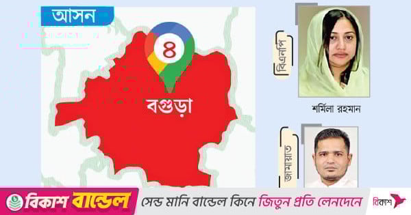 বগুড়া-৪ কাহালু-নন্দীগ্রাম সংসদীয় আসন দুটি উপজেলা নিয়ে গঠিত। নন্দীগ্রাম উপজেলার পাঁচ ইউনিয়ন এবং একটি পৌরসভা ও কাহালু উপজেলার নয়টি ইউনিয়ন এবং একটি পৌরসভা নিয়ে গঠিত। এই আসনে এবার বিএনপির সম্ভাব্য প্রার্থী সাবেক প্রধানমন্ত্রী বেগম খালেদা জিয়ার ছোট ছেলে মরহুম আরাফাত রহমান কোকোর সহধর্মিণী শর্মিলা রহমান সিঁথি। জেলা বিএনপির ভারপ্রাপ্ত সাধারণ সম্পাদক ও এই আসনের সাবেক এমপি আলহাজ মোশারফ হোসেন বলেন, ‘জিয়া পরিবার থেকে শুধু বগুড়ায় নয়, দেশের যে কোনো আসনে প্রার্থী হলে আমরা বগুড়ার নেতা-কর্মী সেই আসনে গিয়ে কাজ করব।’ ২০১৮ সালের জাতীয় সংসদ নির্বাচনে বিএনপির প্রার্থী আলহাজ মোশারফ সংসদ সদস্য নির্বাচিত হয়েছিলেন। পরে দলীয় সিদ্ধান্তে তিনি পদত্যাগ করেন। মোশারফ বলেন, ‘শহীদ প্রেসিডেন্ট জিয়াউর রহমান ও সাবেক প্রধানমন্ত্রী বেগম খালেদা জিয়ার আদর্শ বাস্তবায়নে কাজ করে যাব।’ তিনি তৃণমূল পর্যায়ে ভোটারদের সঙ্গে শুভেচ্ছাবিনিময় করছেন। দুই উপজেলার উন্নয়নে প্রতিশ্রুতি দিচ্ছেন।  এদিকে বিএনপির বহিষ্কৃত নেতা ও সাবেক এমপি ডা. জিয়াউল হক মোল্লা, জেলা বিএনপির সাবেক ধর্মবিষয়ক সম্পাদক ও কেন্দ্রীয় ওলামা দলের সাবেক যুগ্ম আহ্বায়ক মাওলানা ফজলে রাব্বি তোহা, সুপ্রিম কোর্টের আইনজীবী গোলাম আকতার জাকির, জাতীয় পার্টি থেকে শাহিন মোস্তফা কামাল, গণতন্ত্রী পার্টি থেকে মনজুরুল ইসলাম মনোনয়ন পেতে কাজ করছেন। এই আসনে জামায়াতের একক প্রার্থী ড. মোস্তফা ফয়সাল পারভেজ। এ ছাড়া এই আসনে বাসদের পক্ষ থেকে সাইফুজ্জামান টুটুলের নাম ঘোষণা করা হয়েছে। জানা গেছে, এই আসনে জামায়াতের প্রার্থী হিসেবে কেন্দ্রীয় শুরা সদস্য ও তিনবারের উপজেলা চেয়ারম্যান অধ্যক্ষ মাওলানা তায়েব আলীর নাম ঘোষণা করা হয়েছিল। গত ১ জুন তিনি হৃদ্রোগে আক্রান্ত হয়ে মারা যান। সম্প্রতি দলীয়ভাবে পুনরায় যাচাইবাছাই শেষে ড. মোস্তফা ফয়সাল পারভেজকে মনোনয়ন দেওয়া হয়। ড. মোস্তফা ঢাকা বিশ্ববিদ্যালয়ের রাষ্ট্রবিজ্ঞান বিভাগ থেকে অনার্স ও প্রথম শ্রেণিতে মাস্টার্স সম্পন্ন করেন। বর্তমানে তুরস্কের একটি বিশ্ববিদ্যালয়ে গবেষণা করছেন।