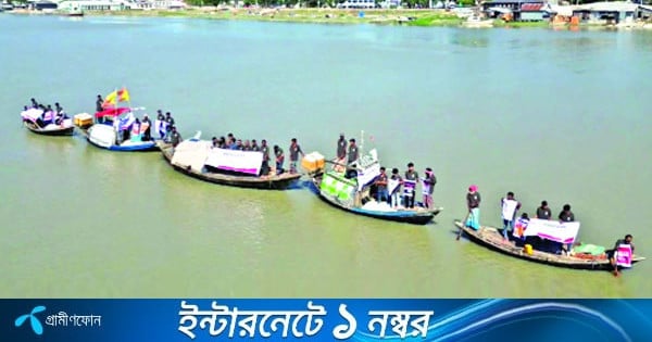 দক্ষিণে গ্যাস দেবেন না; গ্যাস সম্প্রসারণের বিরুদ্ধে ‘বিশ্বব্যাপী কর্ম দিবস’ উপলক্ষে গতকাল পটুয়াখালীর কলাপাড়ায় আন্ধারমানিক নদীতে ‘নৌবহর’ কর্মসূচি পালন করে কয়েকটি সংগঠন -বাংলাদেশ প্রতিদিন