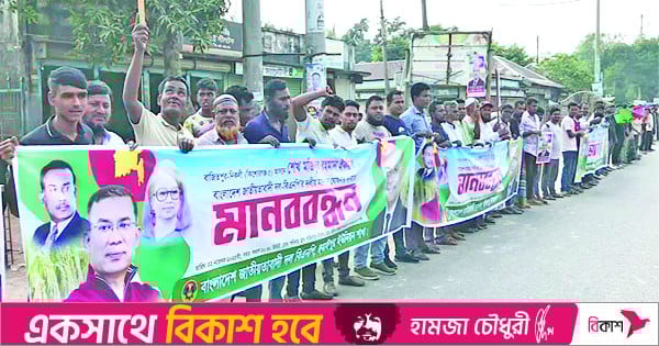 কিশোরগঞ্জ-৫ (বাজিতপুর-নিকলী) আসনে বিএনপির কেন্দ্রীয় নির্বাহী কমিটির সদস্য বাজিতপুর উপজেলা বিএনপির সভাপতি শেখ মজিবুর রহমান ইকবালকে দলীয় মনোনয়ন দেওয়ার দাবিতে মানববন্ধন কর্মসূচি পালিত হয়েছে। গতকাল সকাল সাড়ে ১০টা থেকে দুপুর সাড়ে ১২টা পর্যন্ত বাজিতপুর ও নিকলী উপজেলার বিভিন্ন সড়কে এ কর্মসূচি পালন করেন তাঁর সমর্থকরা। বাজিতপুর পৌর সদরের বটতলা মোড় থেকে নিকলী উপজেলা সদরের শহীদ সরণিকা বালিকা উচ্চ বিদ্যালয় পর্যন্ত বিভিন্ন সড়ক ও গুরুত্বপূর্ণ মোড়ে এ কমসূচি পালিত হয়। মানববন্ধন কর্মসূচিতে বাজিতপুর অংশে উপজেলা বিএনপির সাধারণ সম্পাদক মনিরুজ্জামান মনির, সিনিয়র সহ-সভাপতি মোস্তফা আমিনুল হক, সহ-সভাপতি বীর মুক্তিযোদ্ধা সজল হোসেন, যুগ্ম সাধারণ সম্পাদক মোহাম্মদ আলী, সাংগঠনিক সম্পাদক জিল্লুর রহমান, উপজেলা শ্রমিক দলের সভাপতি শেখ আলী আহসান সবুজ এবং নিকলীর অংশে উপজেলা বিএনপির সাধারণ সম্পাদক আতিকুল ইসলাম তালুকদার হেলিমসহ বিভিন্ন পর্যায়ের নেতা-কর্মী ও সমর্থকরা অংশ নেন। বাজিতপুর ও নিকলী উপজেলা বিএনপি ও অঙ্গসংগঠনের নেতা-কর্মীদের ব্যানারে মানববন্ধন কর্মসূচি পালিত হয়।