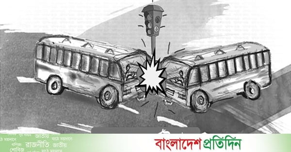 ভাঙ্গা (ফরিদপুর) : ফরিদপুরের ভাঙ্গায় একটি যাত্রীবাহী বাস অন্য একটি যাত্রীবাহী বাসকে ধাক্কা দিয়ে নিয়ন্ত্রণ হারিয়ে রাস্তার পাশে খাদে পড়ে যায়। এতে বাসযাত্রী এক নারী ও এক শিশুর মৃত্যু হয়েছে। এ ঘটনায় কমপক্ষে আরও ১২ জন যাত্রী আহত হয়েছেন। গতকাল সকালে উপজেলার চুমুরদী ইউনিয়নের পূর্বসদরদী এলাকায় ঢাকা-বরিশাল মহাসড়কে এ দুর্ঘটনা ঘটে। নিহতরা হলেন- বরিশালের উজিরপুর উপজেলার কচুয়া গ্রামের নজরুল ইসলামের স্ত্রী শামসুন্নাহার বেগম (৪৩) ও পটুয়াখালীর কলাপাড়া উপজেলার লোডা গ্রামের আবু হানিফ গাজীর মেয়ে রাবেয়া আক্তার (৮)। আহতদের ভাঙ্গা উপজেলা স্বাস্থ্য কমপ্লেক্সে ভর্তি করা হয়েছে।