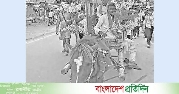 বাগাতিপাড়া সরকারি পাইলট মডেল উচ্চ বিদ্যালয়ের সহকারী শিক্ষক (টেকনিক্যাল) দিলীপ কুমার সরকারকে ঘোড়ার গাড়িতে চড়িয়ে রাজকীয় বিদায় জানিয়েছেন শিক্ষক-শিক্ষার্থীরা। দীর্ঘ কর্মজীবন শেষে গতকাল অবসরজনিত বিদায়ে এমন আয়োজন করা হয়। বিদায় উপলক্ষে ফুল-বেলুন দিয়ে সাজানো হয় ঘোড়ার গাড়ি। শিক্ষকের বসার জন্য রাখা হয় সোফা। গলায় পরানো হয় গাঁদা ফুলের মালা। এমন বর্ণিল সাজে বিদ্যালয় থেকে শিক্ষকের বাড়ি পার্শ্ববর্তী লালপুরের চংধুপইলে রেখে আসা হয় প্রিয় শিক্ষককে। এ সময় সড়কের দুই ধার ধরে শিক্ষার্থীরা হাঁটতে থাকে। এর আগে বিদ্যালয়ের হলরুমে ভারপ্রাপ্ত প্রধান শিক্ষক অনীতা রানীর সভাপতিত্বে বিদায় সংবর্ধনা অনুষ্ঠিত হয়।