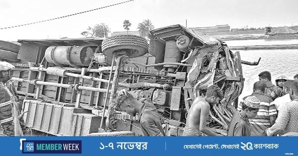 বাগেরহাট : মোংলা-খুলনা জাতীয় মহাসড়কে বাস উল্টে খাদে পড়ে দুই যাত্রী নিহত হয়েছেন। আহত হয়েছেন বাস ও মোটরসাইকেলের সাত আরোহী। রামপাল উপজেলার তেঁতুলিয়া ব্রিজ এলাকায় দুপুরে এ ঘটনা ঘটে। নিহতদের পরিচয় জানা যায়নি। আহতদের উপজেলা হাসপাতালে ভর্তি করা হয়েছে। ফায়ার সার্ভিস সূত্রে জানা যায়, মোংলা থেকে খুলনার উদ্দেশে ছেড়ে যাওয়া একটি বাসের সঙ্গে খুলনা থেকে আসা সাতটি মোটরসাইকেলের সংঘর্ষ হয়। বাসটি হার্ডব্রেক করলে পাশের খাদে পড়ে যায়। ঘটনাস্থলেই দুই যাত্রী নিহত হন। আহত হন বাস ও মোটরসাইকেলের সাত আরোহী।