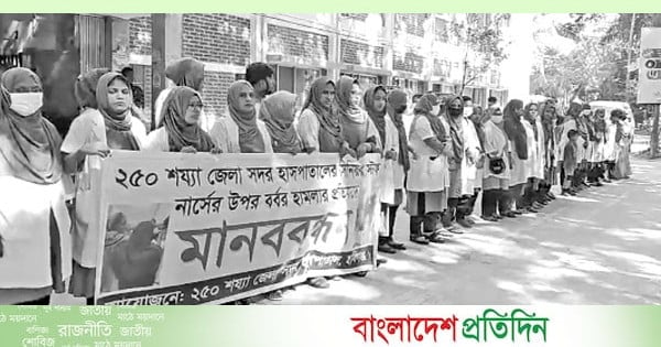 জানা যায়, শায়েস্তাগঞ্জ উপজেলার নুরপুর গ্রামের শাহ আলম (৩৫) নামে এক শ্বাসকষ্টের রোগী গতকাল ভোরে সদর হাসপাতালে নিয়ে আসেন স্বজনরা। পরে ওয়ার্ডে রোগীটি মারা যায়। এ সময় রোগীর স্বজনরা চিকিৎসার অবহেলায় মৃত্যু হয়েছে দাবি করে ওয়ার্ডে কর্তব্যরত নার্স নাহারকে মারধর করে। এর প্রতিবাদে সকাল থেকে কর্মবিরতি পালন করেন নার্সরা। পরে দুপুর ১২টার দিকে মানববন্ধন করেন তারা। জেলা সদর আধুনিক হাসপাতালের তত্ত্বাবধায়ক আমিনুল হক সরকার বলেন, ‘হাসপাতালে রোগীর মৃত্যুকে কেন্দ্র করে নার্সকে মারধরের ঘটনা দুঃখজনক। বিষয়টি আইনশৃঙ্খলা রক্ষাকারী বাহিনীকে অবগত করা হবে।’