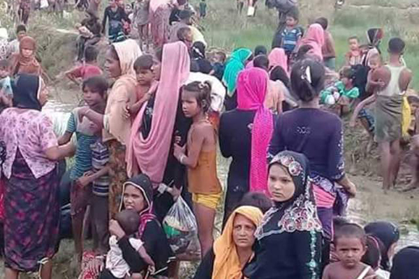 মিয়ানমার সেনাবাহিনীর হেলিকপ্টার থেকে ছোড়া বোমায় প্রকম্পিত হচ্ছে রাখাইন রাজ্যের মুসলিম রোহিঙ্গা পল্লীগুলো। আপনজন হারিয়ে নিজের জীবন বাঁচাতে শত শত শিশু, নারী-পুরুষ ১৫-২০ ঘণ্টা পায়ে হেঁটে আশ্রয় নিতে চেয়েছিল তুমব্র ও ঘুমধুম সীমান্ত দিয়ে বাংলাদেশে। কিন্তু এখানেও বর্ডার গার্ড বাংলাদেশ'র (বিজিবি) বাঁধা। অবশেষে নিরুপায় হয়ে শত শত রোহিঙ্গা আশ্রয় নিয়েছে জিরো পয়েন্টে খোলা আকাশের নিচে।