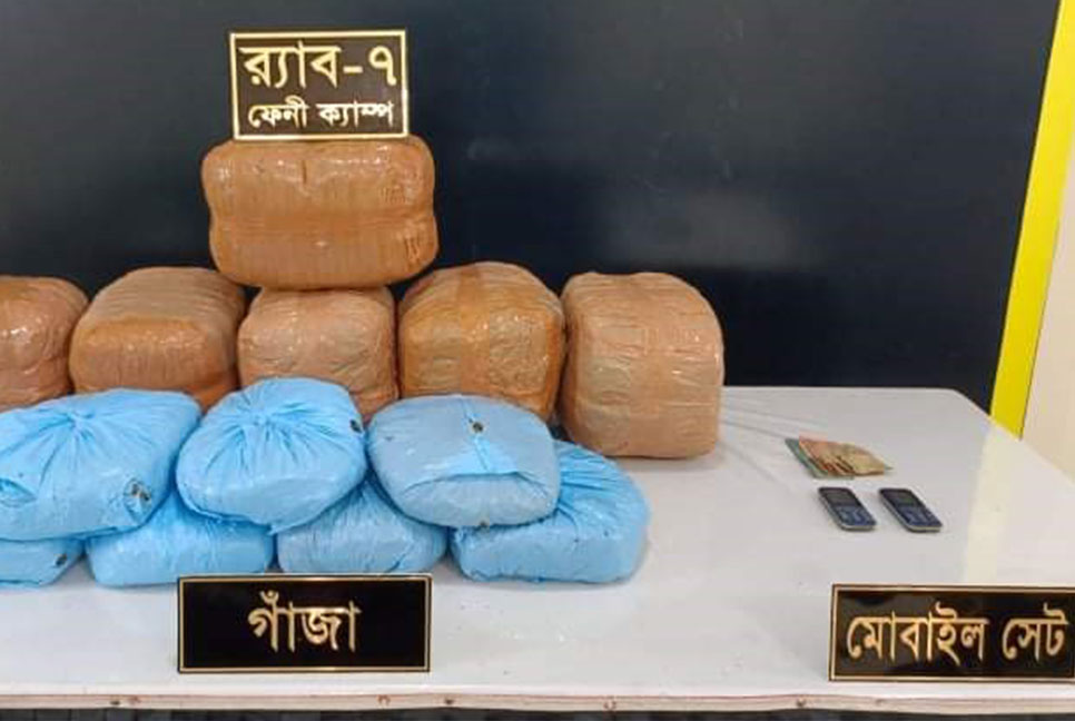 ফেনীর বারাহীপুর এলাকায় অভিযান চালিয়ে ৩০ কেজি গাঁজা উদ্ধার করেছে র্যাব-৭ ফেনী ক্যাম্পের সদস্যরা। এসময় ঘটনাস্থল থেকে ২ জনকে আটক করা হয়। আজ সোমবার ভোরে পৌর শহরের বারাহীপুরের পশ্চিম খাজুরিয়া এলাকার রিফাত ম্যানশনের সামনে থেকে গাঁজাসহ তাদের আটক করে র্যাব।