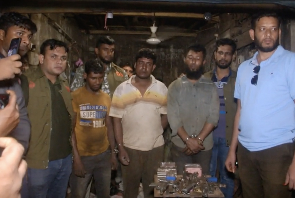 তিনি বলেন, ‘ইঞ্জিনিয়ারিং ওয়ার্কশপের আড়ালে ওই স্থানে আগ্নেয়াস্ত্র তৈরি করা হতো। এ ব্যাপারে গোপন সংবাদ পেয়ে সেখানে অভিযান চালানো হয়। ওয়ার্কশপ থেকে অস্ত্র তৈরির তিন কারিগরকে আটক করা হয়েছে।’