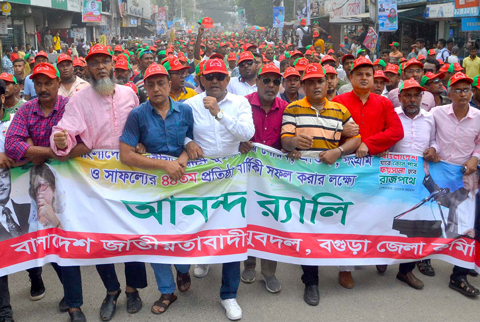 অনুষ্ঠান শেষে নেতাকর্মীরা প্রতিষ্ঠাবার্ষিকীর কেক কাটেন। এর আগে বগুড়ার বিভিন্ন উপজেলা এবং পৌরসভার ২১টি ওয়ার্ড থেকে নেতাকর্মীরা খণ্ড খণ্ড মিছিল নিয়ে আলতাফুন্নেছা খেলার মাঠে সমাবেত হয়। পরে সেখান থেকে এক বর্ণাঢ্য শোভাযাত্রা শহর প্রদক্ষিণ করে দলীয় কার্যালয়ে এসে শেষ হয়।