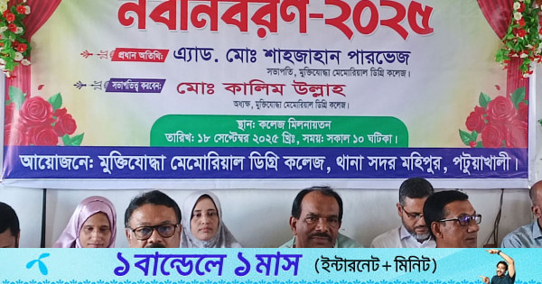 পটুয়াখালীর কলাপাড়ায় মুক্তিযোদ্ধা মেমোরিয়াল ডিগ্রী কলেজে একাদশ শ্রেণির শিক্ষার্থীদের নবীনবরন অনুষ্ঠিত হয়েছে। বৃহস্পতিবার বেলা ১১ টার দিকে কলেজ মিলনায়তনে এ আয়োজন করা হয়।