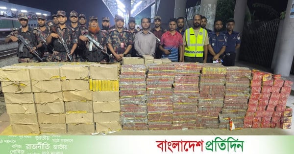 কুমিল্লার সদর দক্ষিণ উপজেলার রসুলপুর রেলওয়ে স্টেশনে বিশেষ টাস্কফোর্স অভিযানে বিপুল পরিমাণ ভারতীয় বাজি আটক করেছে বিজিবি। আটককৃত বাজির আনুমানিক বাজারমূল্য এক কোটি সাইত্রিশ লাখ দশ হাজার টাকা।