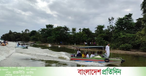 শুক্রবার বিকালে জামালগঞ্জ উপজেলা সদর থেকে অর্ধশতাধিক স্পিডবোট নিয়ে এ নৌযাত্রা শুরু হয়ে তাহিরপুর উপজেলার বাদাঘাট বাজারে গিয়ে শেষ হয়।