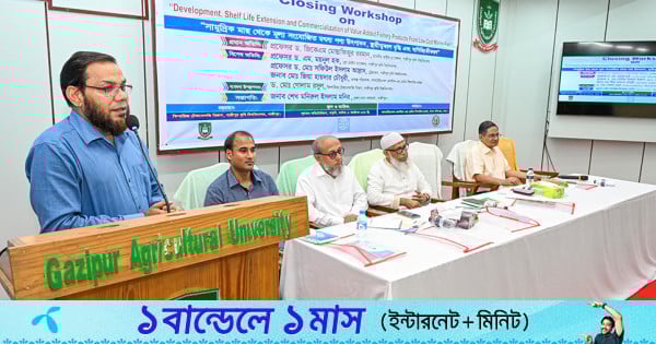 গাজীপুর কৃষি বিশ্ববিদ্যালয়ে (গাকৃবি) অনুষ্ঠিত হলো “সামুদ্রিক মাছ থেকে মূল্য সংযোজিত মৎস্য পণ্য উৎপাদন, স্থায়ীত্বকাল বৃদ্ধি এবং বাণিজ্যিকীকরণ” বিষয়ক এক বিশেষ কর্মশালার সমাপনী অনুষ্ঠান। বিশ্ববিদ্যালয়ের ফিশারিজ টেকনোলজি বিভাগের আয়োজনে এবং মৎস্য অধিদপ্তর, ঢাকা’র অধীন সাসটেইনেবল কোস্টাল অ্যান্ড মেরিন ফিশারিজ প্রকল্পের অর্থায়নে কর্মশালাটি বুধবার সকালে বিশ্ববিদ্যালয়ের পুরাতন অডিটোরিয়ামে অনুষ্ঠিত হয়।