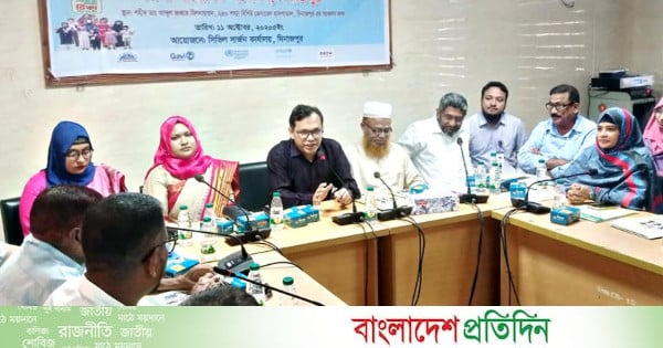 ‘টাইফয়েড জ্বর প্রতিরোধে টিকা নেব দল বেঁধে’ স্লোগানে টাইফয়েড টিকাদান ক্যাম্পেইন সামনে রেখে দিনাজপুরের সর্বস্তরের সাংবাদিকদের সঙ্গে মতবিনিময় সভা অনুষ্ঠিত হয়েছে।