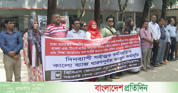 ঢাকা কলেজের শিক্ষক, কর্মকর্তা ও নিয়মিত মেধাবী শিক্ষার্থীদের ওপর দুস্কৃতকারীদের হামলা এবং টিচার্স লাউঞ্জ ভাঙচুরের প্রতিবাদে রংপুরে কর্মবিরতি পালন করেছে বিসিএস জেনারেল এডুকেশন অ্যাসোসিয়েশন।
