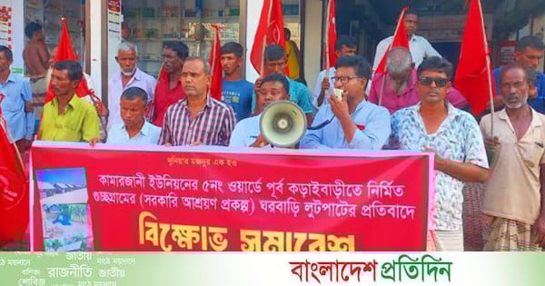 আশ্রয়ণ প্রকল্পের ঘর লুটপাটের প্রতিবাদে সিপিবির বিক্ষোভ