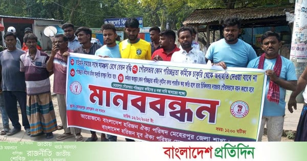 বৃহস্পতিবার (১৬ অক্টোবর) দুপুরে মেহেরপুর প্রেসক্লাবের সামনে হরিজন ঐক্য পরিষদ ও হরিজন যুব ঐক্য পরিষদের ব্যানারে এ কর্মসূচি অনুষ্ঠিত হয়।