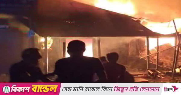 বোয়ালমারীর কাদিরদী বাজারে অগ্নিকাণ্ডে ১৭ দোকান পুড়ে ছাই