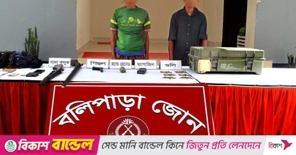 বান্দরবানে বর্ডার গার্ড বাংলাদেশ (বিজিবি) ও সেনাবাহিনীর যৌথ অভিযানে শীর্ষ অস্ত্র ব্যবসায়ী ওয়েবার ত্রিপুরা (৩৩) এবং তার সহযোগী রুইহং ম্রো (৬০)-কে গ্রেপ্তার করা হয়েছে। অভিযানে বিপুল পরিমাণ অস্ত্র ও গোলাবারুদ উদ্ধার করা হয়।