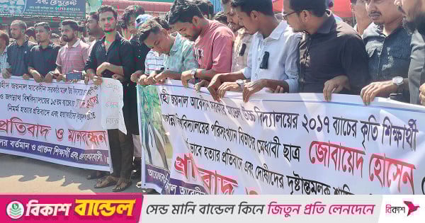 মানববন্ধনে বক্তারা বলেন, মেধাবী শিক্ষার্থী জোবায়েদ হোসেনকে নৃশংসভাবে হত্যা করে এক সম্ভাবনাময় তরুণের জীবন অকালেই থামিয়ে দেওয়া হয়েছে। হত্যাকারীদের দ্রুত গ্রেফতার করে দৃষ্টান্তমূলক শাস্তি দিতে হবে। তাঁরা আরও বলেন, এই হত্যাকাণ্ড কোনোভাবেই মেনে নেওয়া যায় না। আইনশৃঙ্খলা রক্ষাকারী বাহিনী দ্রুত তদন্ত সম্পন্ন করে প্রকৃত অপরাধীদের চিহ্নিত করে সর্বোচ্চ শাস্তি নিশ্চিত করবে—এমন প্রত্যাশা করছি।