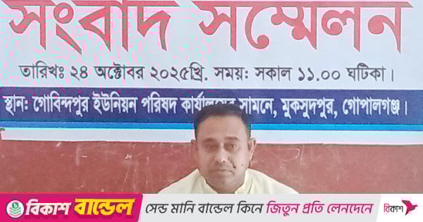 শুক্রবার (২৪ অক্টোবর) বেলা সাড়ে ১১টায় গোবিন্দপুর ইউনিয়ন পরিষদে আয়োজিত এক সংবাদ সম্মেলনে তিনি এ ঘোষণা দেন।