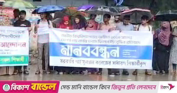 মানববন্ধনে বক্তব্য রাখেন শিক্ষার্থী জাকির হোসেন, শিহাব উদ-দৌলা, ইশা, তনু প্রমুখ।